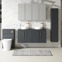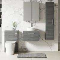 BC Designs Loftwood 800mm Metallic Slate Wall Hung 1 Drawer Unit With Marble Worktop