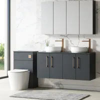 Nuie 1200mm Soft Black Wall Hung 2-Door Vanity Unit With Laminate Worktop