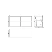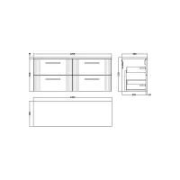Nuie 1200mm Autumn Oak Wall Hung 4-Drawer Unit With Laminate Worktop