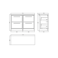 Nuie Arno 1205mm Satin Grey Wall Hung 4 Drawer Vanity Unit With Worktop