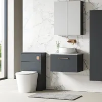 Nuie 1205mm Graphite Grey Woodgrain Handleless Wall Hung 4 Drawer Unit With Colour Match Worktop