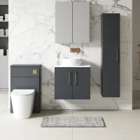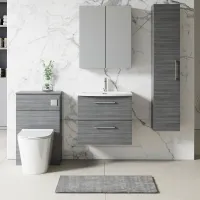 Nuie 600mm Anthracite Woodgrain Wall Hung 1-Drawer Vanity Unit With Laminate Worktop