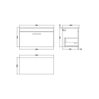 Nuie 800mm Gloss Grey Wall Hung Single Drawer Unit With Laminate Worktop