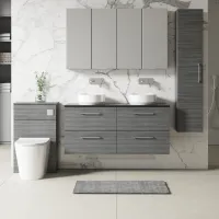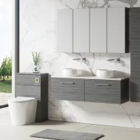Nuie 1200mm Wall Hung Anthracite Woodgrain 4-Drawer Vanity Unit With Laminate Worktop