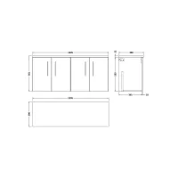 Nuie 1200mm Wall Hung 4-Door Vanity Unit With Laminate Worktop & Handles