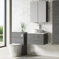 Nuie 600mm Anthracite Woodgrain Wall Hung 1-Drawer Vanity Unit With Laminate Worktop