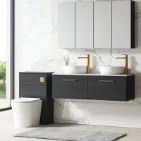 Nuie 1200mm Charcoal Black Wall Hung 2-Drawer Vanity Unit With Laminate Worktop