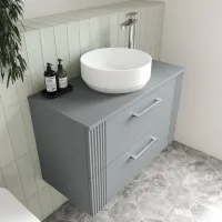 Nuie 600mm Part Fluted Satin Grey Wall Hung 2-Drawer Vanity & Worktop With Chrome Handles