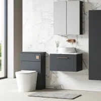 Nuie Arno 600mm Wall Hung 2 Drawer Satin Grey Vanity Unit With Laminate Worktop