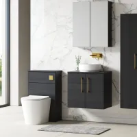 Nuie Arno 600mm Wall Hung 2-Door Charcoal Black Vanity Unit With Worktop