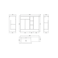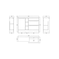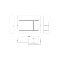 Nuie Lux Krest 1500mm Right Hand L-Shaped Basin Combination Unit with Soft Close Doors & Drawers