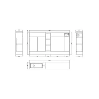 Nuie Lux Fable 1500mm Soft Black Left Hand Combination Unit & L-Shaped Basin With Soft Close Doors