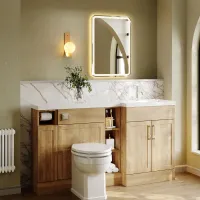 Nuie Lux Fable 1500mm Autumn Oak Right Hand Combination Unit with L-Shaped Basin