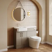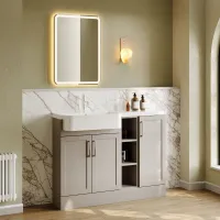 Nuie Lux Fable 1500mm Pebble Grey Combination Unit & L-Shaped Basin Right Hand Including Handles
