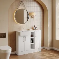 Nuie Lux Fable Traditional 1100mm Left Hand Matt White Combination Unit & Basin Including Handles