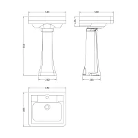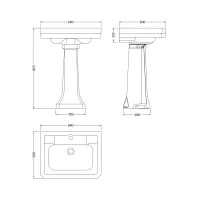 Fitzroy 595mm Basin 3TH,Including Pedestal