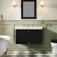 BC Designs Crestfield 800mm Forest Green Wall Hung 1-Drawer Vanity Unit Including 3 Taphole Basin
