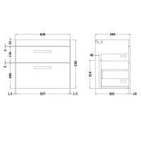 Athena Wall Hung 2 Drawer Vanity Unit 500mm