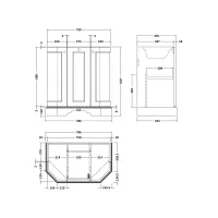 Bayswater 750mm 3-Door Vanity Unit