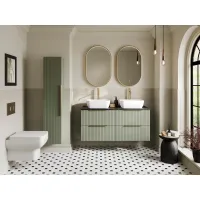 Hudson Reed Fluted 400mm 1 Door Satin Green Wall Hung Tall Cabinet With Handles