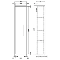 Hudson Reed Solar 350mm 1 Door Cool Grey Wall Hung Tall Cabinet With Handles