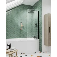 Synergy Square Bath Screen With Fixed Return - Matt Black