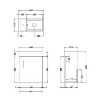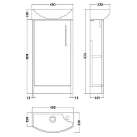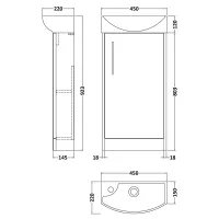 Hudson Reed Juno Compact 450mm Floor Standing Single Door Unit With Right Hand 1 Tap Hole Basin
