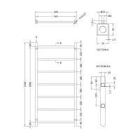 Arley Loco 700mm x 500mm Matt Black Vertical Ladder Rail
