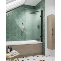 Synergy Vodas Fluted Square Hinged Bath Screen - Matt Black