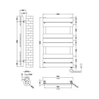 Electric Square Flat Towel Rail with 8 Bars, 840mm x 500mm