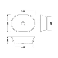Tasse Oval Countertop Basin 575mm x 145mm - No Waste