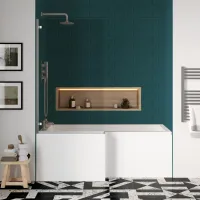 Nuie 1700mm L-Shaped Left Hand Shower Bath With Screen & Side Panel