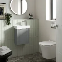 Nuie 440mm Metallic Slate Wall Hung Cloakroom Vanity & Toilet Unit With Tap, Soft Close Seat, Cistern & Flush Plate