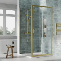 Nuie 900x900x1900mm Brushed Brass Pivot Door Shower Enclosure Including Tray and Side Panel