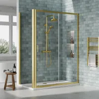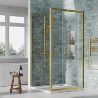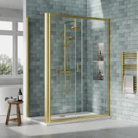 Nuie 1000x700mm Brushed Brass Sliding Shower Enclosure with Tray