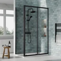 Nuie 1200x700mm Matt Black Rectangular Sliding Shower Enclosure with Tray