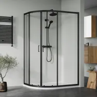 Nuie 900x900x1900 Matt Black Quadrant Shower Enclosure Including Tray