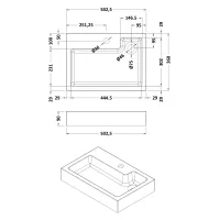 L Shaped 1 Tap Hole Polymarble Basin 503mm