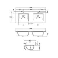 Components Double Bowl Marble Worktop Top 1 Tap Hole, 1200mm