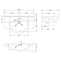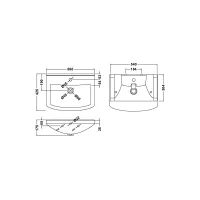 800 x 460 Curved Tap Holein-Edged Basin - 1 Tap Hole