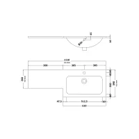 1100x390 L-Shaped Solid Stone Basin - Right Hand - White