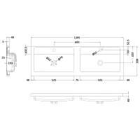 Synergy Omerg 1200mm Double PM Basin- 1 Tap Hole - White