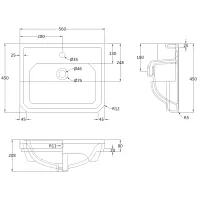 Carlton 560mm Semi Recessed Basin 1 Tap Hole