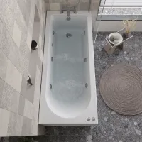 1700mm x 750mm 8 Jet Whirlpool Straight Shower Bath - Chrome