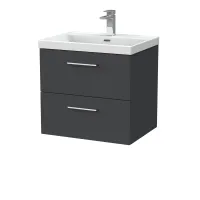 Roseburn 600mm Wall Hung 1 Drawer Unit and 1 Tap Hole Classic Basin - Graphite Grey Woodgrain