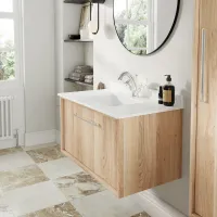Roseburn 800mm Wall Hung 1 Drawer Unit and 1 Tap Hole Classic Basin - Autumn Oak