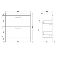 Athena Floor Standing 2 Drawer Vanity Unit 800mm