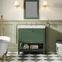 BC Designs Crestfield 800mm Forest Green Wall Hung 1-Drawer Vanity Unit Including 3 Taphole Basin