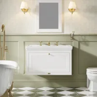 BC Designs Crestfield 813mm Wall Hung Nimbus White Vanity Unit With 1 Soft Close Drawer & 3 Taphole Basin