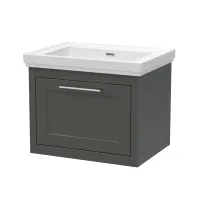 BC Designs Crestfield 600mm Dark Lead Wall Hung 1-Drawer Vanity Unit With 3 Taphole Basin